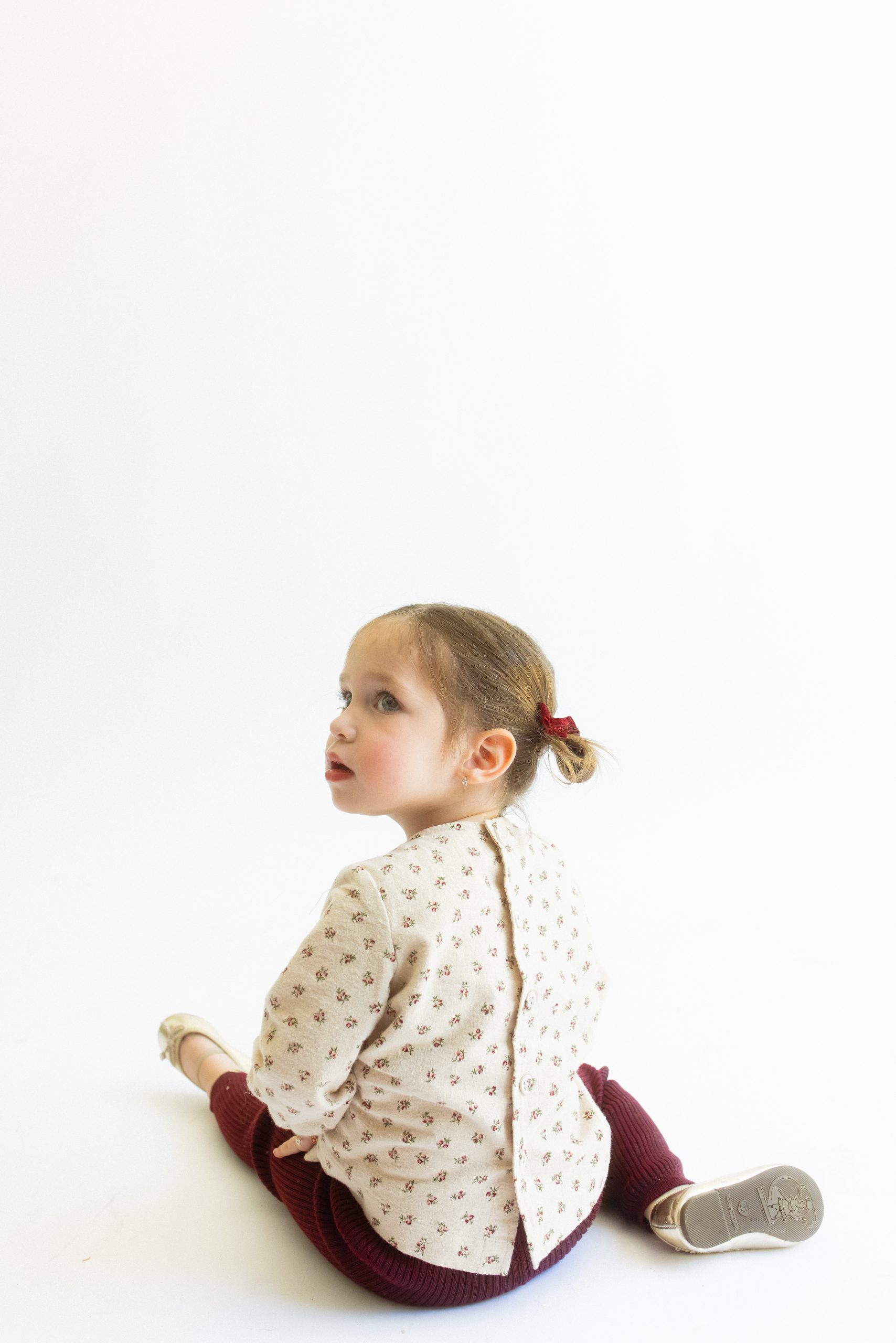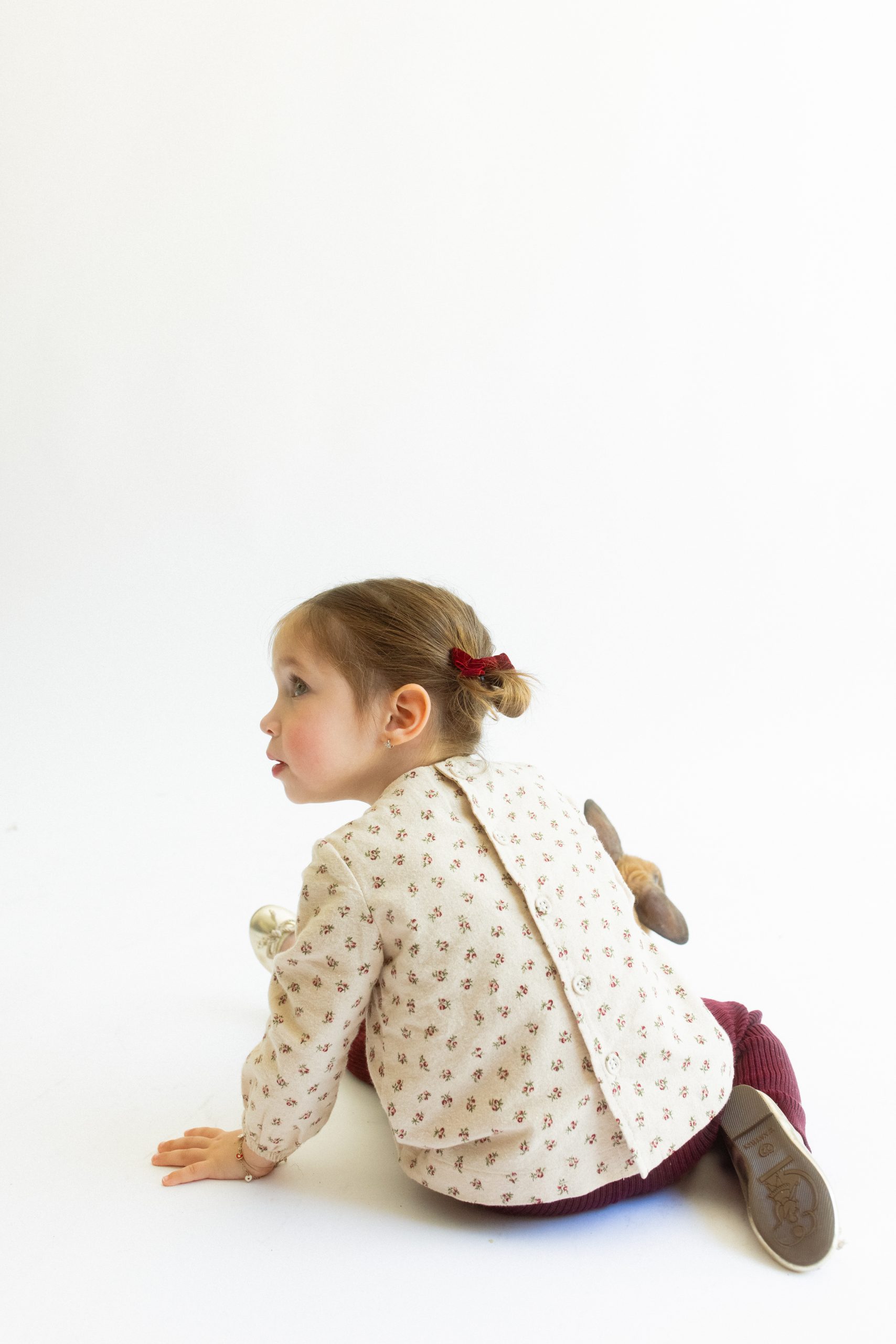חולצת תינוקות שבתית מבד פלנל דק בדפוס פרחים עדין מותאם למגוון טייצים